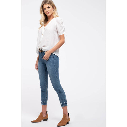 Plus Size Lace Tie Shoulders Eyelet Detailed Blouse