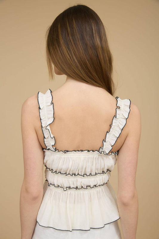 Contrast Trim Ruched Bow Detail Sleeveless Blouse