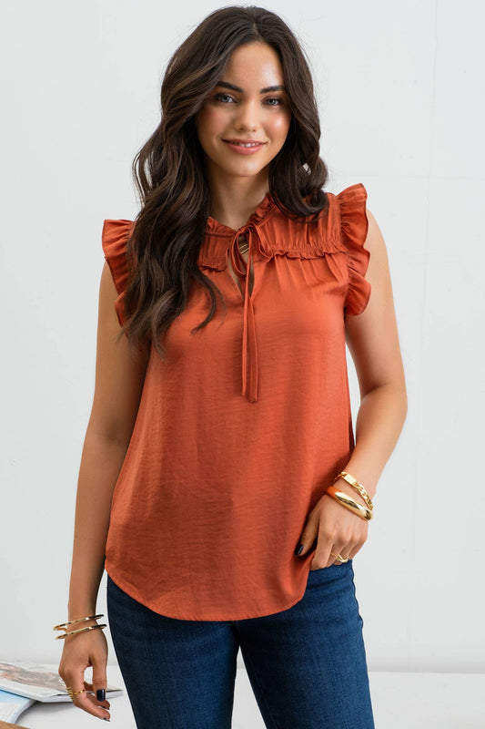 Contrast Trim Ruched Bow Detail Sleeveless Blouse