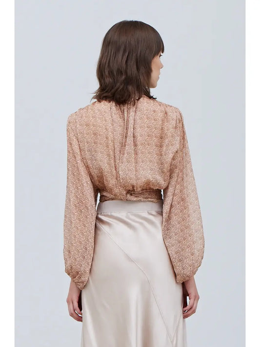Long Sleeve Drawstring Neck Shirring Floral Print Top