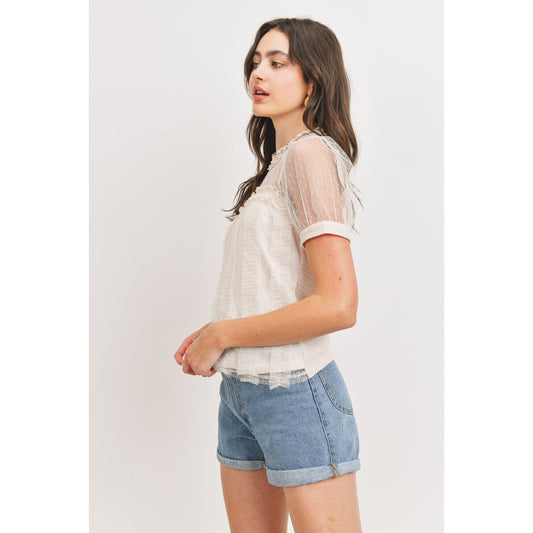 Plus Size Lace Tie Shoulders Eyelet Detailed Blouse