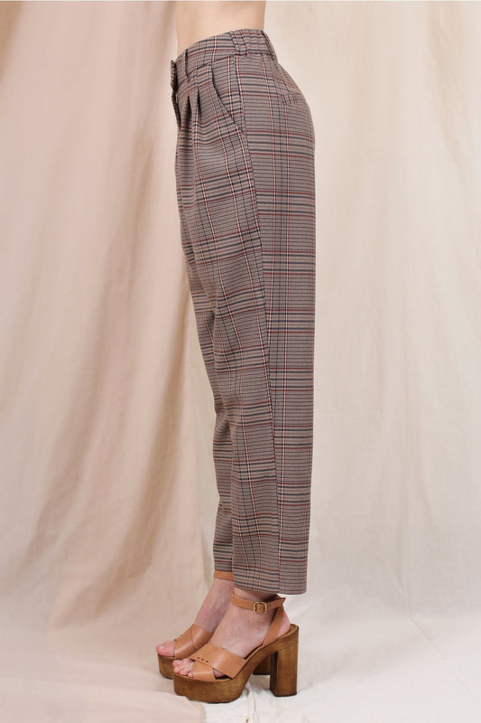 High Waisted Brown Plaid Pleated Chic Pants