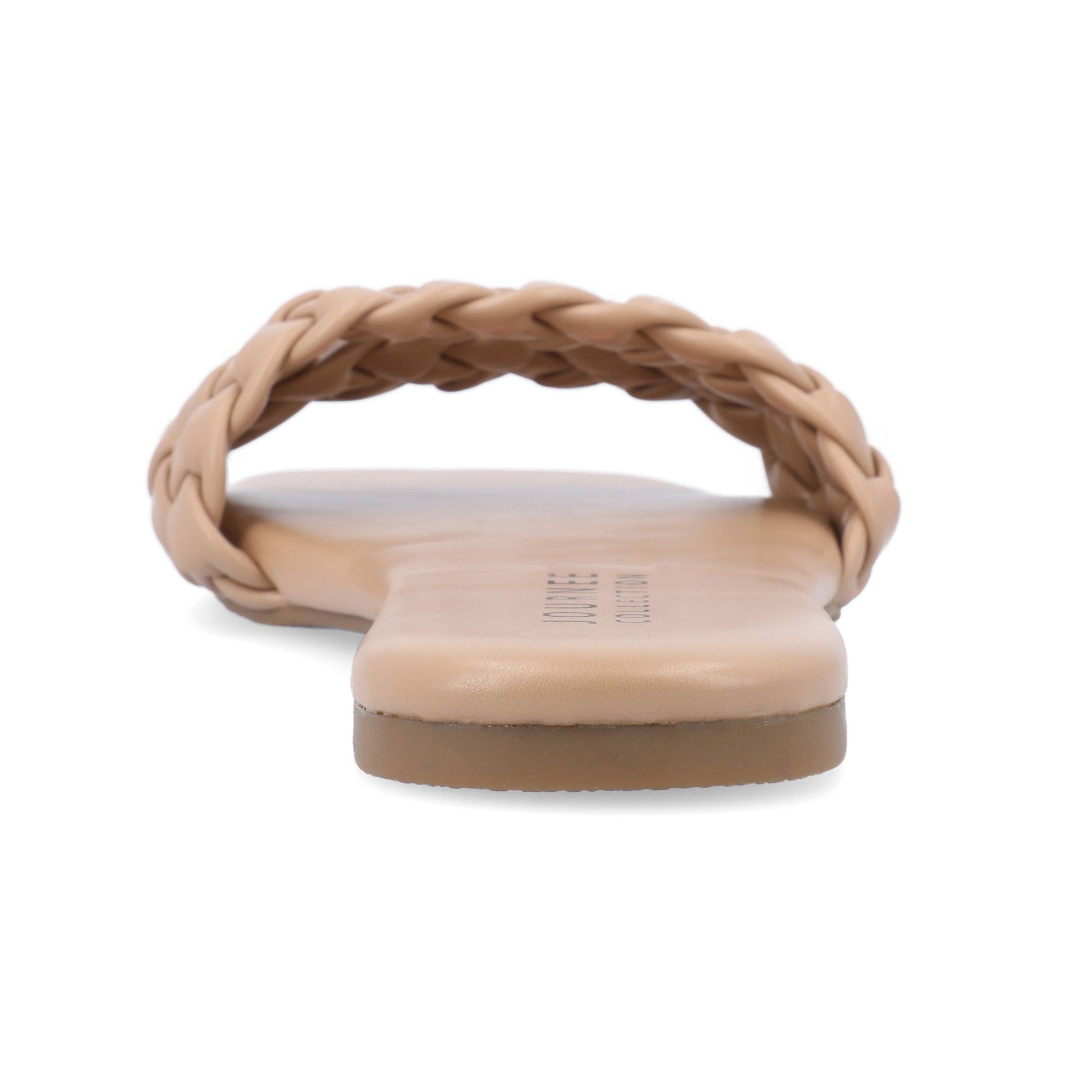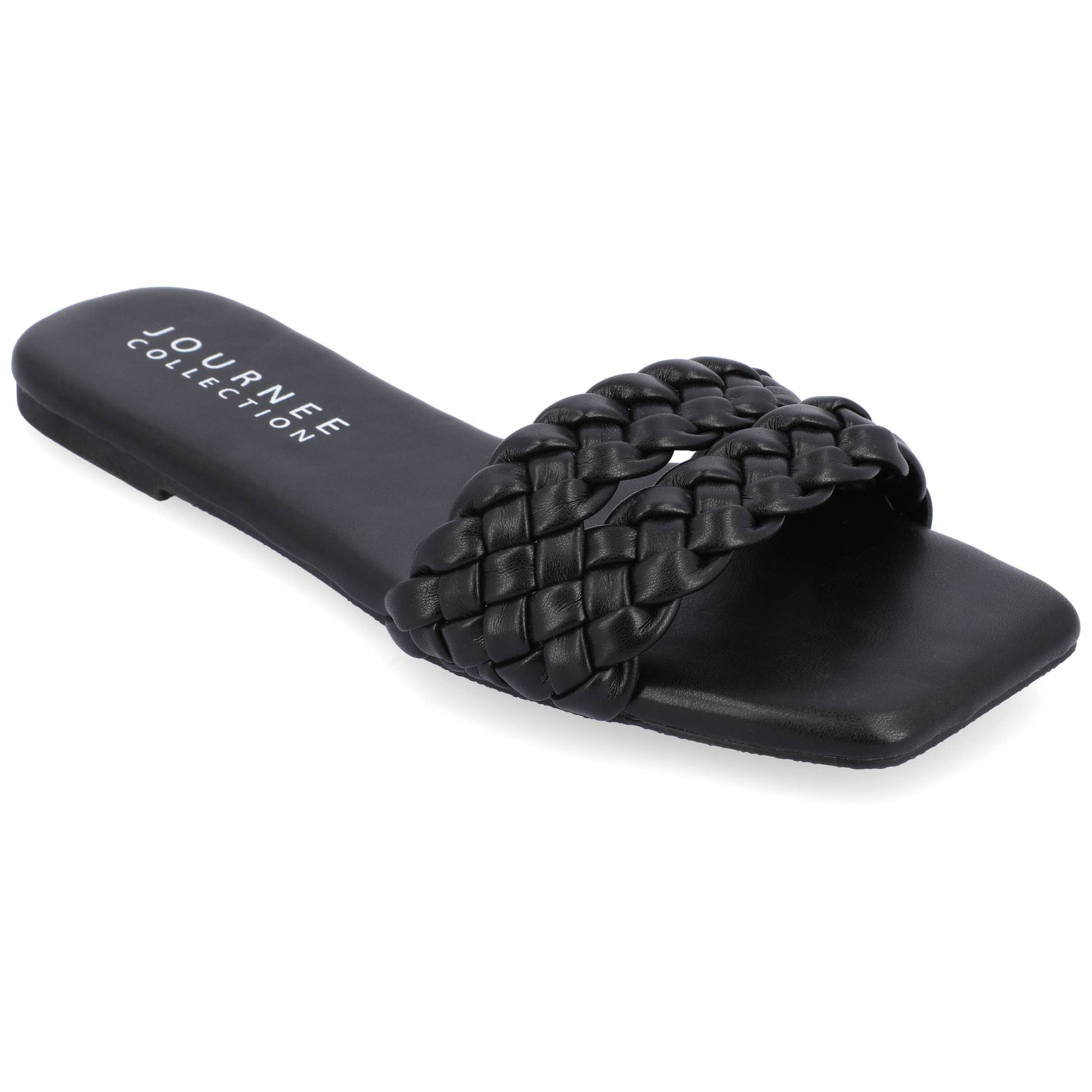 This slip-on sandal makes summer style a breeze. The Sawyerr slide sandal from Journee Collection has been made with luxe vegan leather, a double braided band design, and an open square toe that will make these an instant favorite for how well they match everything. A 4 mm Tru Comfort Foam™ Insole and slide-on silhouette make this style super comfy.